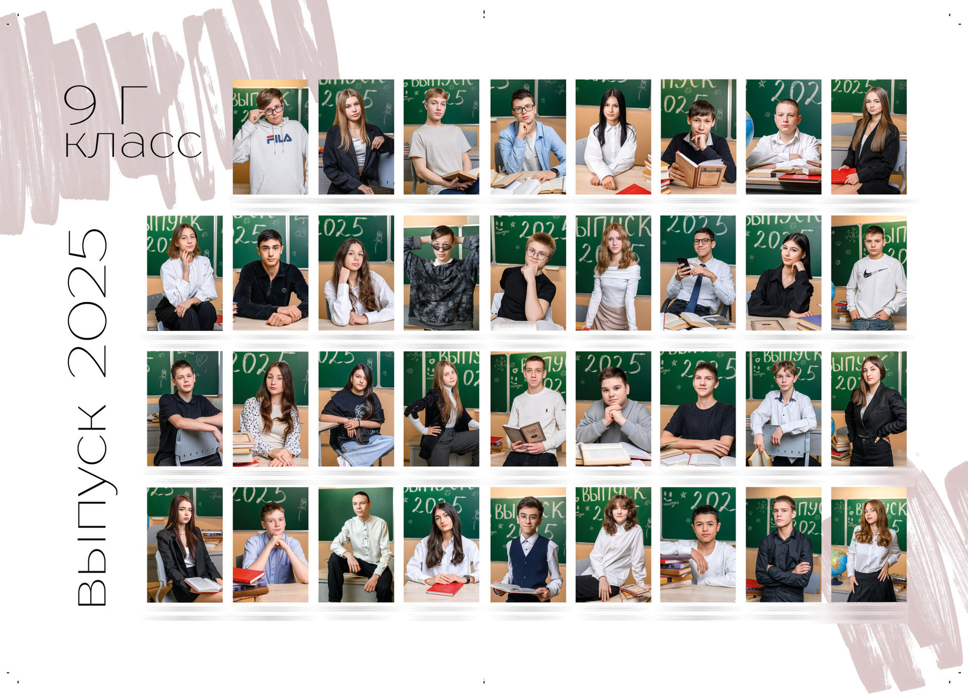 Разворот № 2 — виньетка (разворот, на котором располагаются портреты всех детей и классного руководителя)