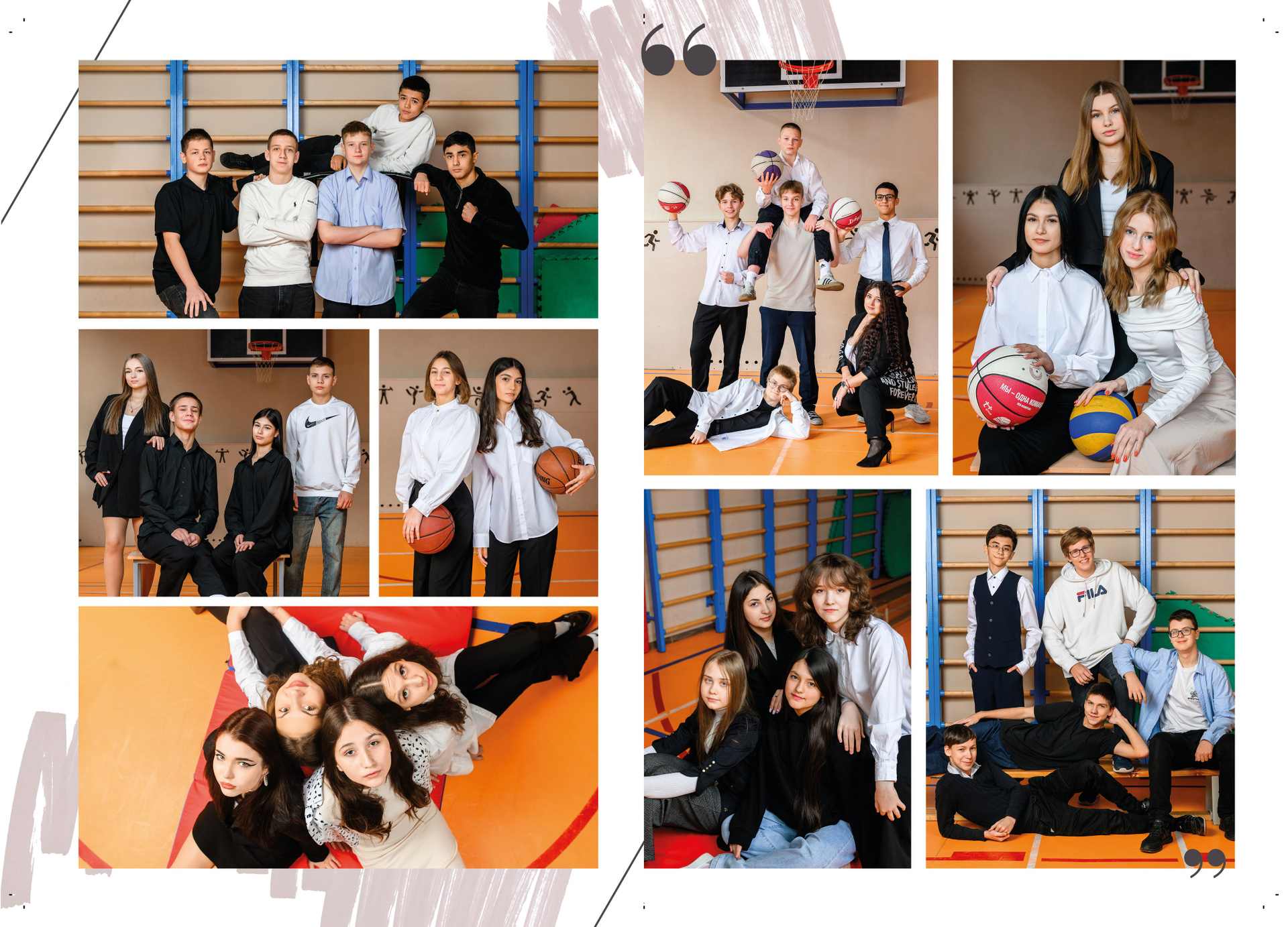 Разворот № 4-9 — групповые фото класса в школе и на улице